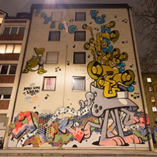 in urban spaces. Our main concern is to sensitise young people to art and culture with current socio political subjects such as human rights,